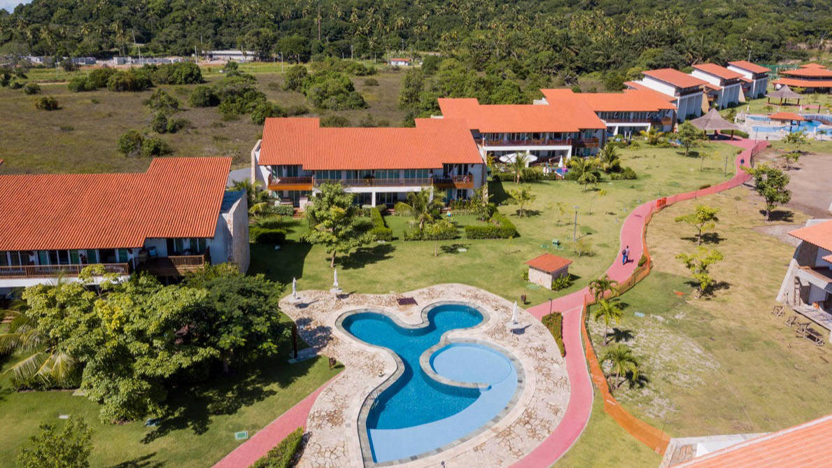 Chalé duplex com jardim privado. No pavimento térreo: sala para dois ambientes, uma ampla suíte VIP com acesso a varanda aconchegante, cozinha, WC social, varanda com saída para jardim de uso privativo. No pavimento superior: 02 suítes com acesso a ampla varanda para desfrutar de uma bela vista da praia sobre os jardins.