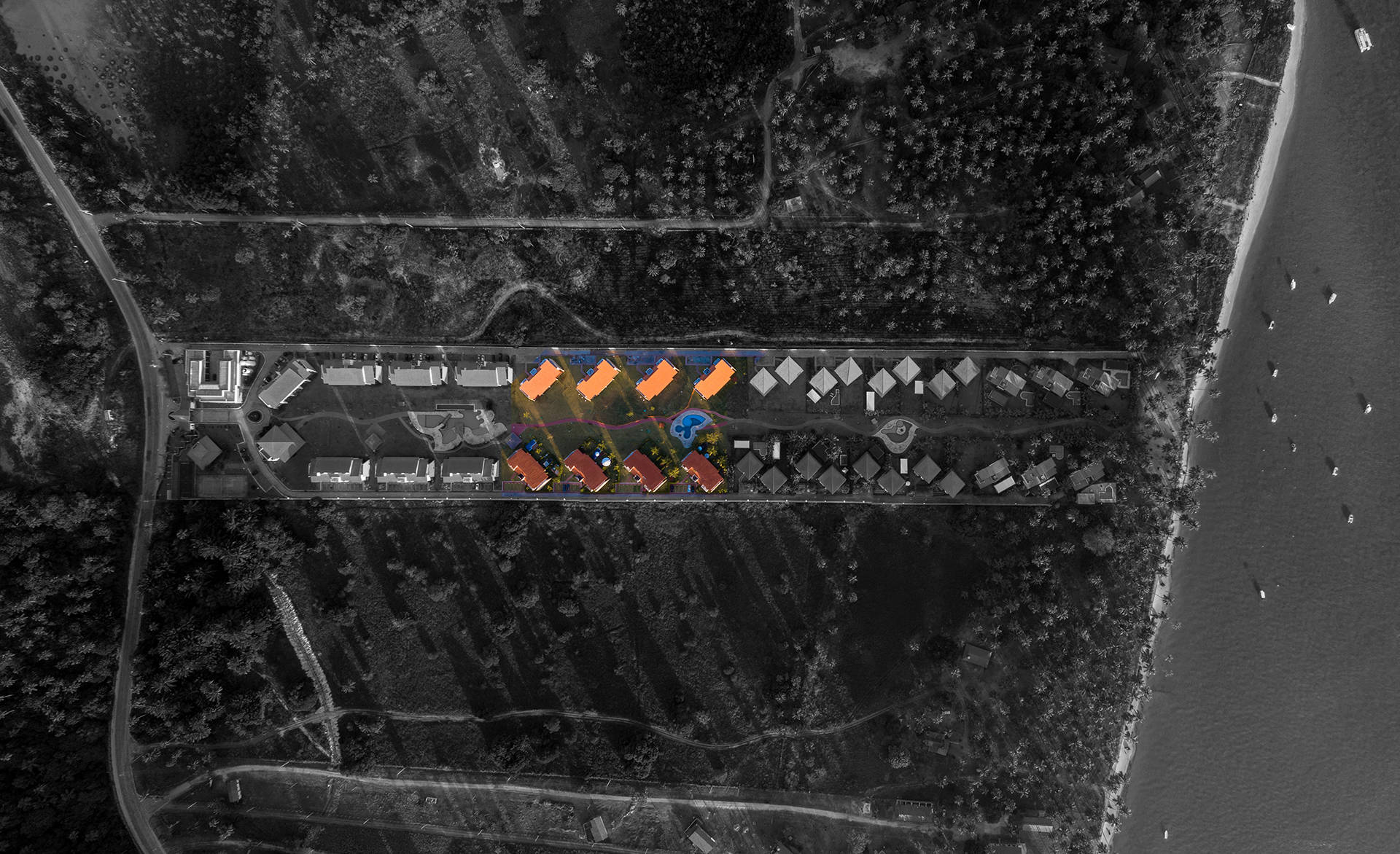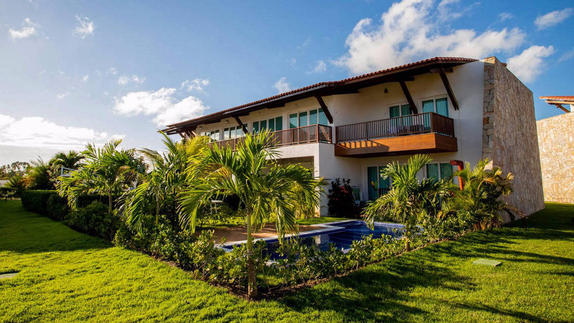 As salas e os quartos estão direcionados aos jardins com vistas para a praia. Além disso, todos incluem uma ou duas vagas para estacionamento